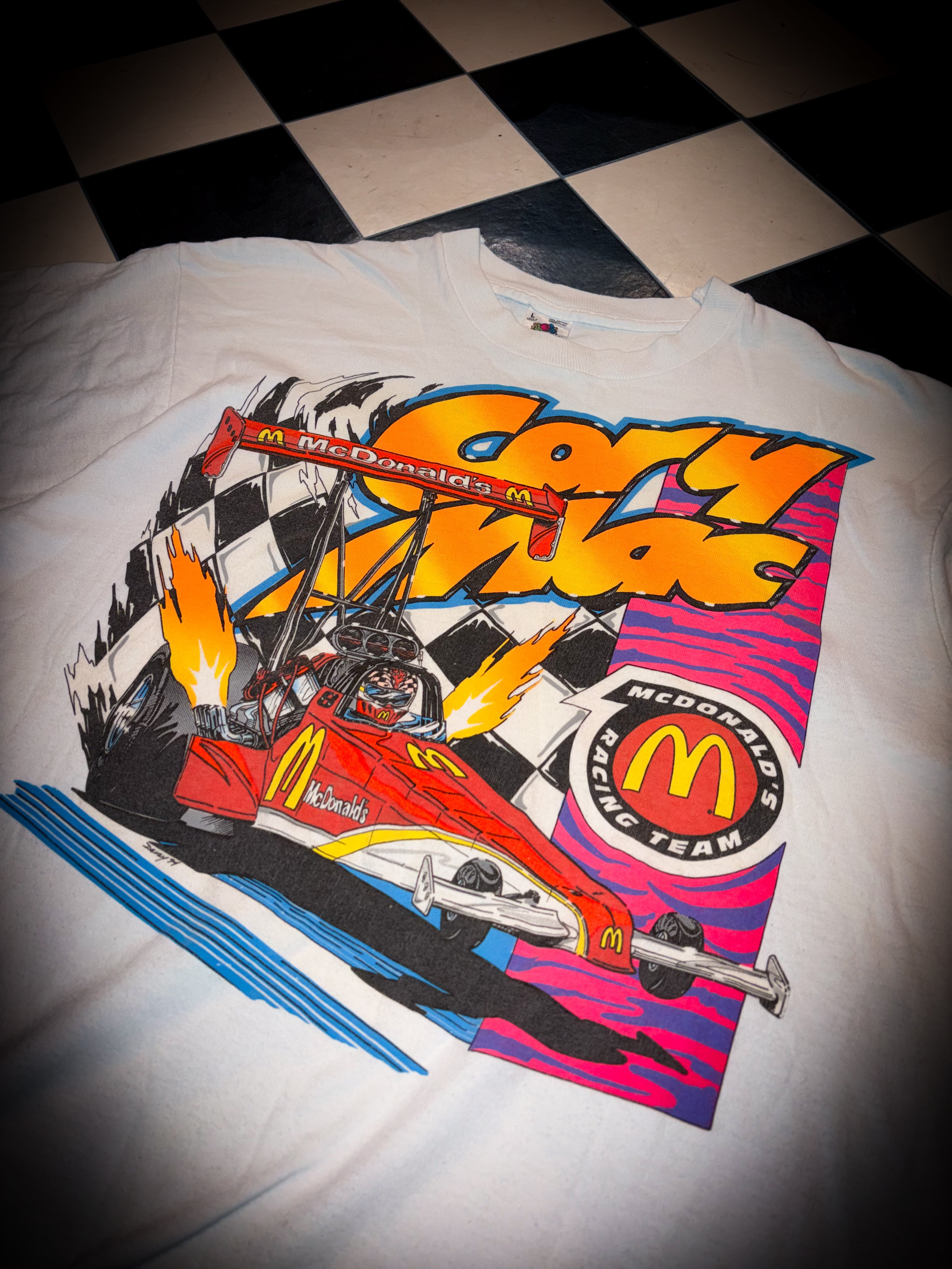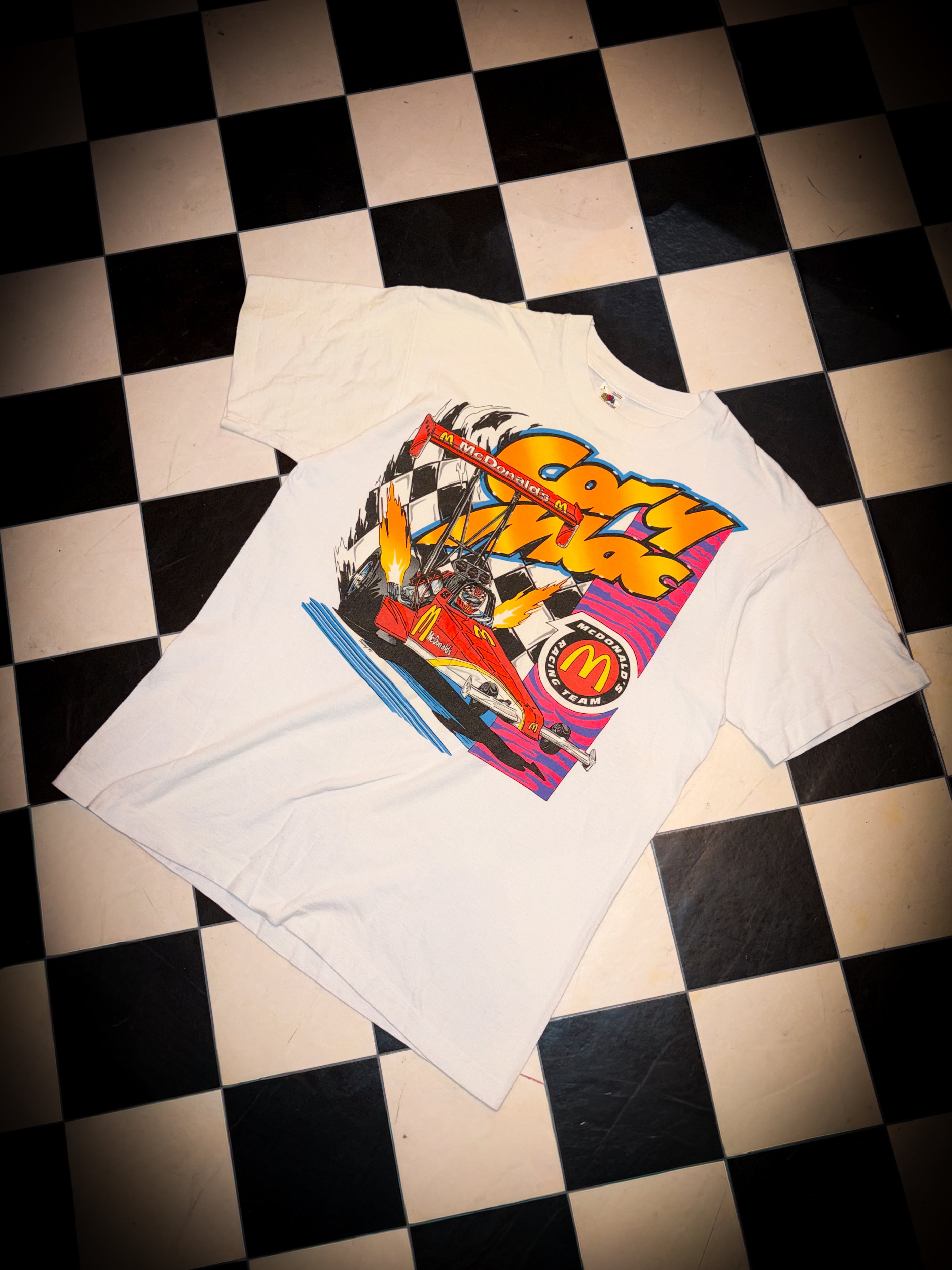 90s USA fruits of the room McDonald マックレーシングTシャツ【EC21】